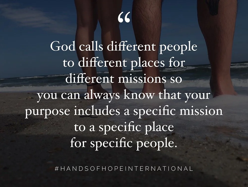 God calls different people to different places for different missions so you can always know that your purpose includes a specific mission to a specific place for specific people.