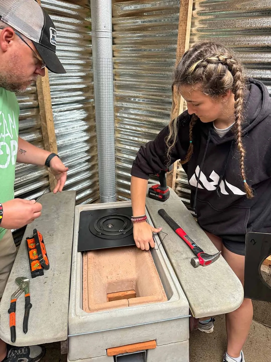 Most families in these rural areas cook over open fires inside their homes, filling their single-room structures with harmful smoke that causes respiratory illness and long-term health issues. We install specialized wood-burning cook stoves that safely ventilate smoke outside, immediately creating a cleaner, healthier environment for the entire family.